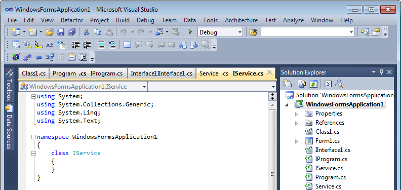 To improve interface tab name representation I’ve created the additional ITransform add-in to transform interface titles after grouping. With this add-in for the IService.cs and Service.cs pair a grouped tab will be “Service .cs Interface” and a single interface tab will remain “IService.cs”: