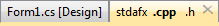 But if we Re-sort tabs, then .cpp becomes the primary extension for the stdafx tab and it moves before Form1: