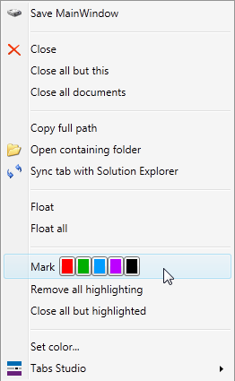 Let me remind you, that you can start adding a tab coloring rule from two places. From the tab context menu Set color… command and from the Tabs Studio Presentation options page. In the first case the suggestions will be tailored for the tab you selected to color and in the second case all open tabs appear in the suggestions.